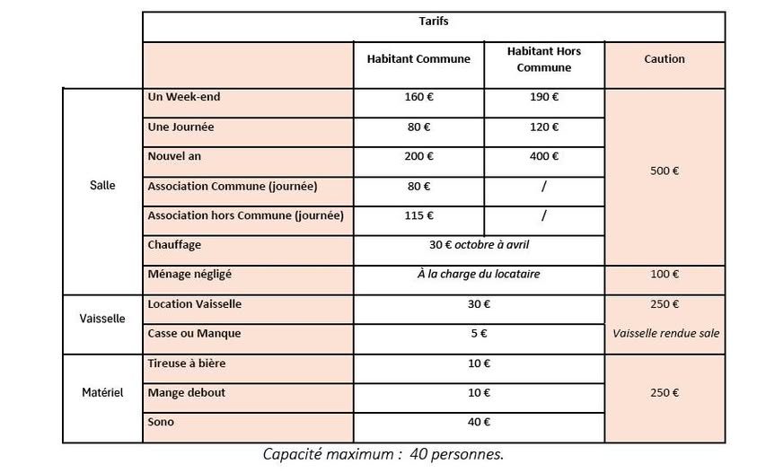 Vous trouverez ci-joint les prix et le contrat sur notre site internet : https://www.nuillelejalais.fr/page/location-de-salle